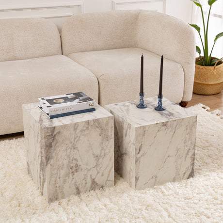 269,95Grundpreis /Nicht verfügbarModerne Beistelltisch Set von 2 Kubus Quadrat Marmoroptik - 40x40x40/45