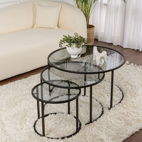 109,95Grundpreis /Nicht verfügbarModerne Runde Couchtisch Set von 2 Uru Schwarz - Transparentes Glas - 60/42 cm