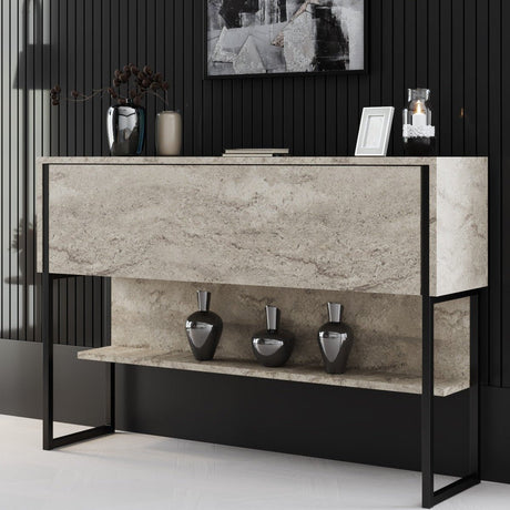 239,95Grundpreis /Nicht verfügbarModernes Travertin Luxus Sideboard 120x80x35 - Schwarzes Gestell - Ein Fach