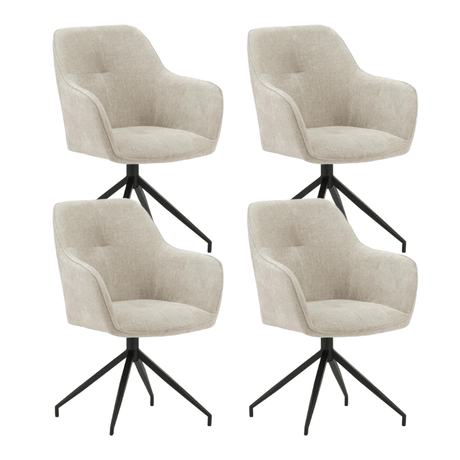 511,21Grundpreis /Nicht verfügbarSet von 4 Drehbaren Esszimmerstühlen Nela Chenille Beige - Mit Armlehnen