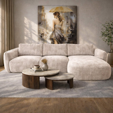 Ab 1.299,00Grundpreis /Nicht verfügbar3-Sitzer-Ecksofa Chiara Gerippter Stoff in Beige