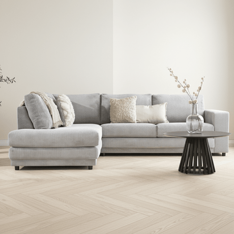 1.399,951.599,95Grundpreis /Nicht verfügbarEcksofa hellgraues Rippstoff-Sofagarnitur Gabi - links