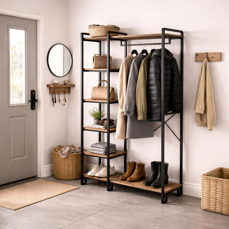 Karl Garderobenständer mit 8 Haken – mit Schuhregal und Hutablage
