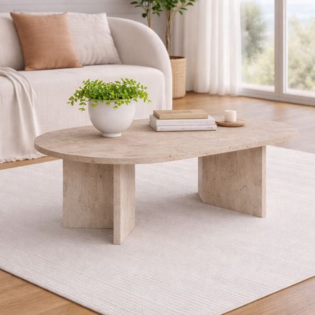 119,95Grundpreis /Nicht verfügbarOrganischer Couchtisch Travertin Melamin Marmorlook Melta - 105x65 cm