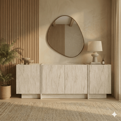 399,95599,95Grundpreis /Nicht verfügbarCouchtisch aus Travertin-Melamin – Japandi – 120 x 60 cm – Akira