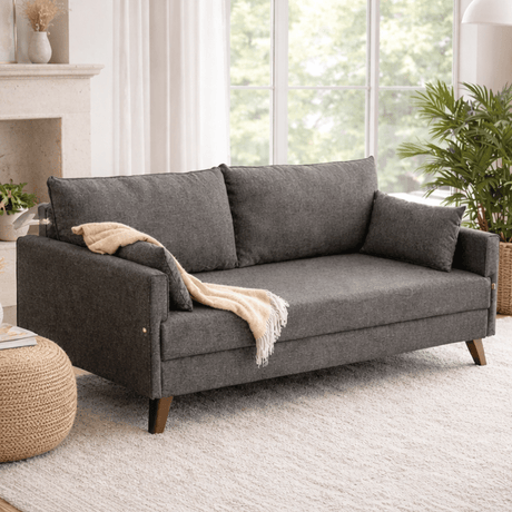 1.099,00Grundpreis /Nicht verfügbarSchlafsofa aus anthrazitfarbenem Stoff - 2-Sitzer - inklusive Hocker - linksseitig - Bella