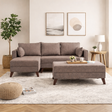 1.099,00Grundpreis /Nicht verfügbarSchlafsofa aus taupefarbenem Stoff - 2-Sitzer - inklusive Hocker - linksseitig - Bella