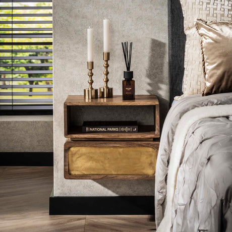 239,00Grundpreis /Nicht verfügbarSchwebender Nachttisch Industrial Naomi Akazienholz 1 Schublade