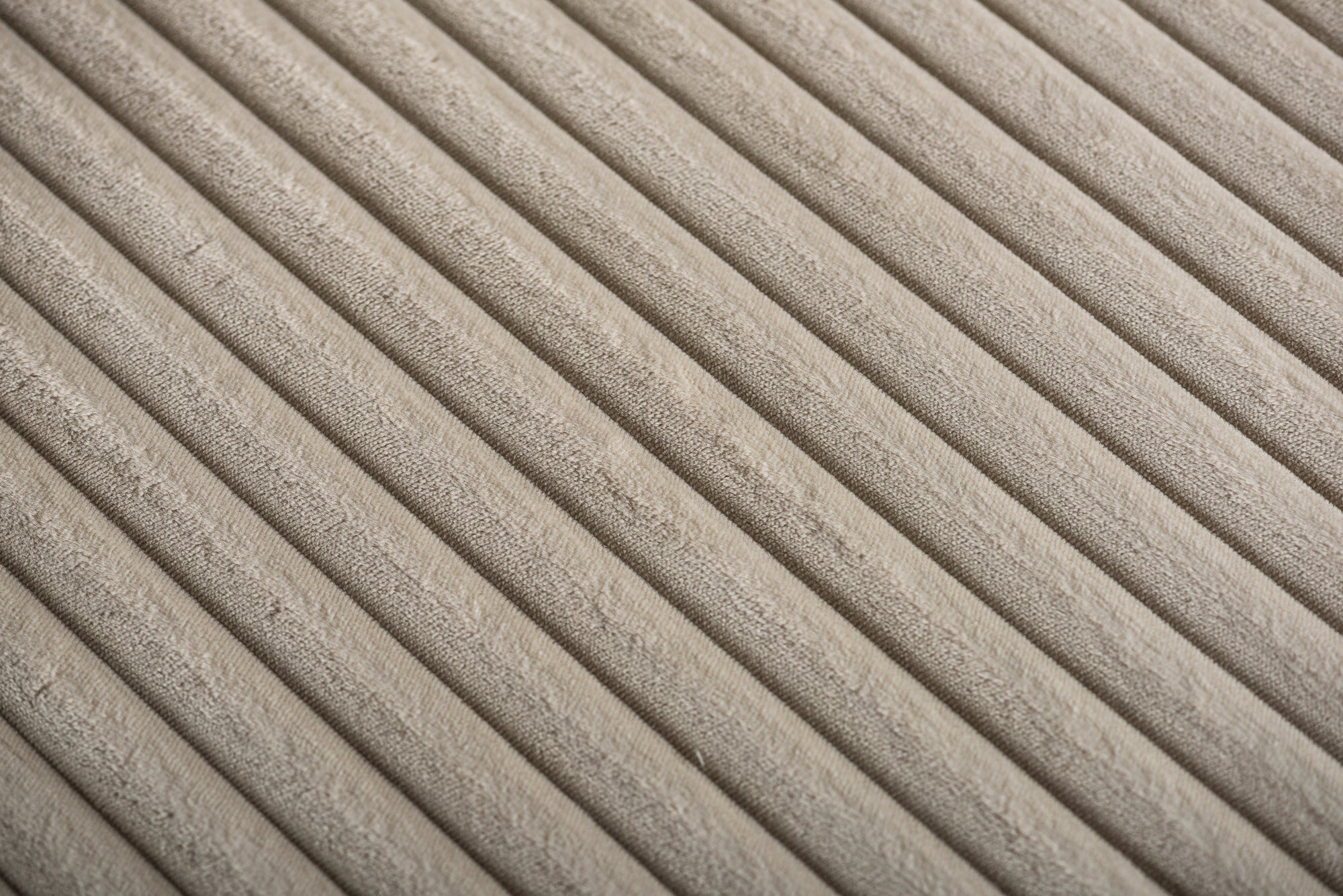 Rippenstaub, auch als Rippen -Samt oder Cord bekannt, ist eine robuste und langlebige Substanz mit einer charakteristischen Rippenstruktur, die durch einen bestimmten Webprozess erzeugt wird, und wird aufgrund seines stilvollen Aussehens, seiner weichen Textur und seines Sitzkomforts häufig für Möbelabdeckungen verwendet.