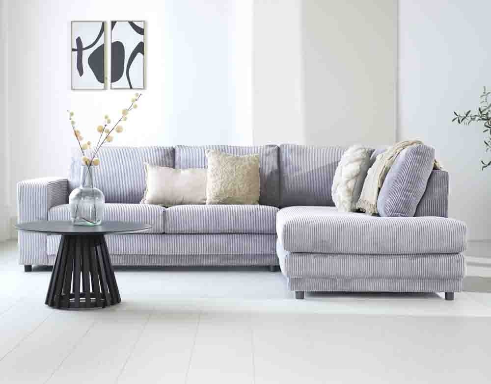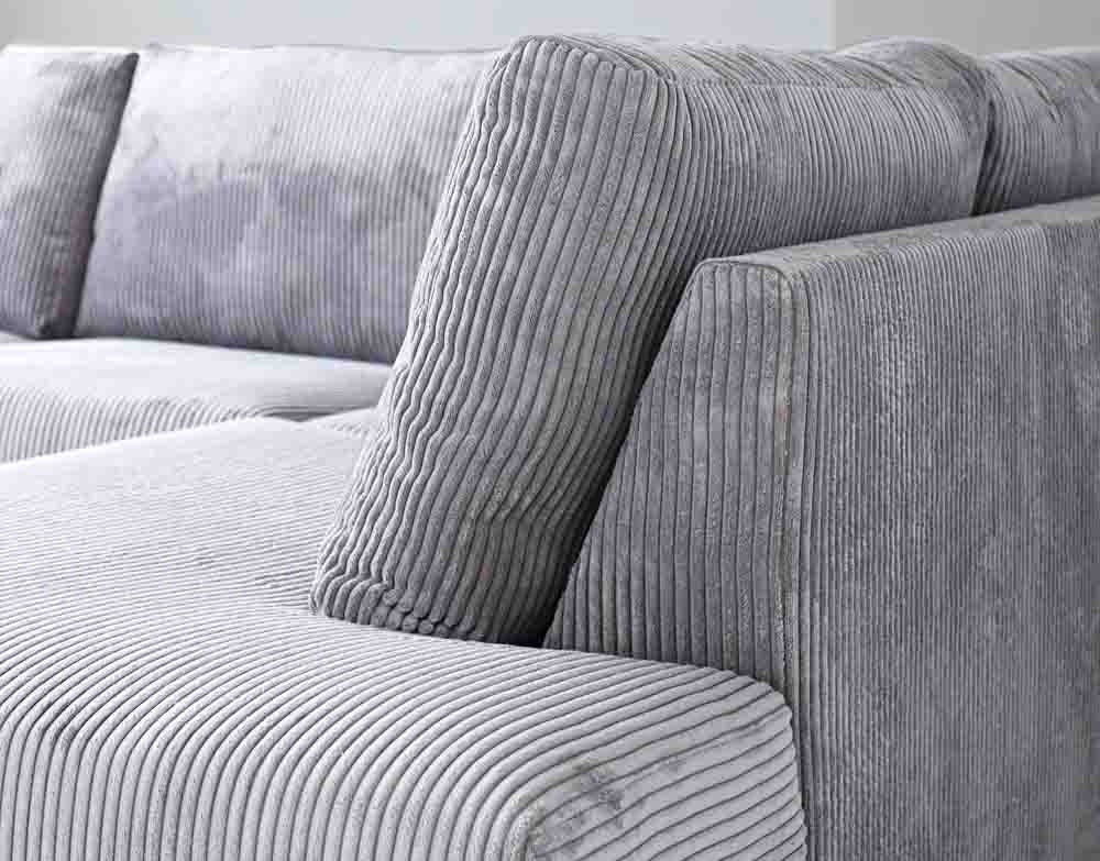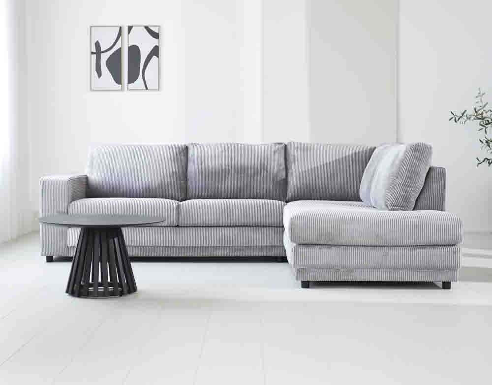 Das moderne Ecksofa Gabi ist aus Cordstoff gefertigt und hat Metallfüße. Dieses verschleißfeste Ecksofa bietet dank der breiten und weichen Kissen einen komfortablen Sitz. Möchten Sie sich nach einem langen Arbeitstag bequem entspannen? Wählen Sie das Ecksofa Gabi!
