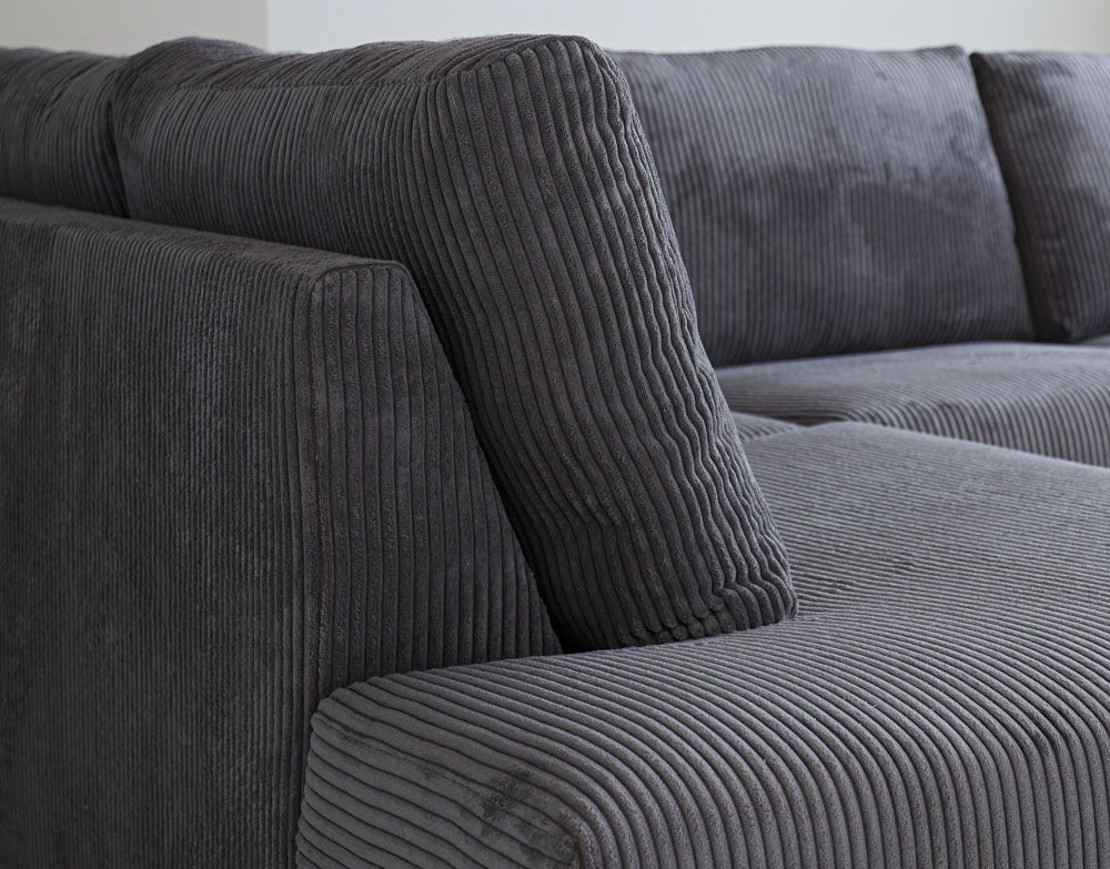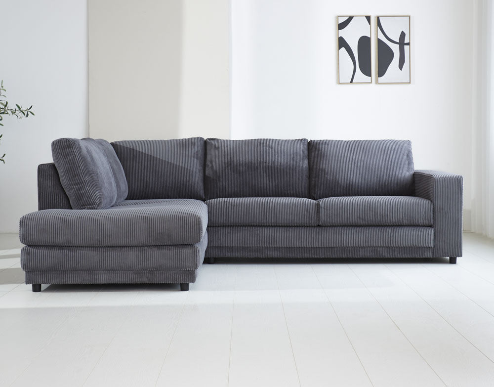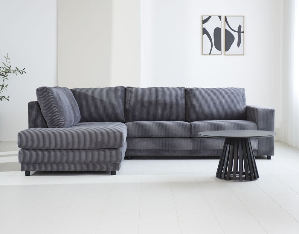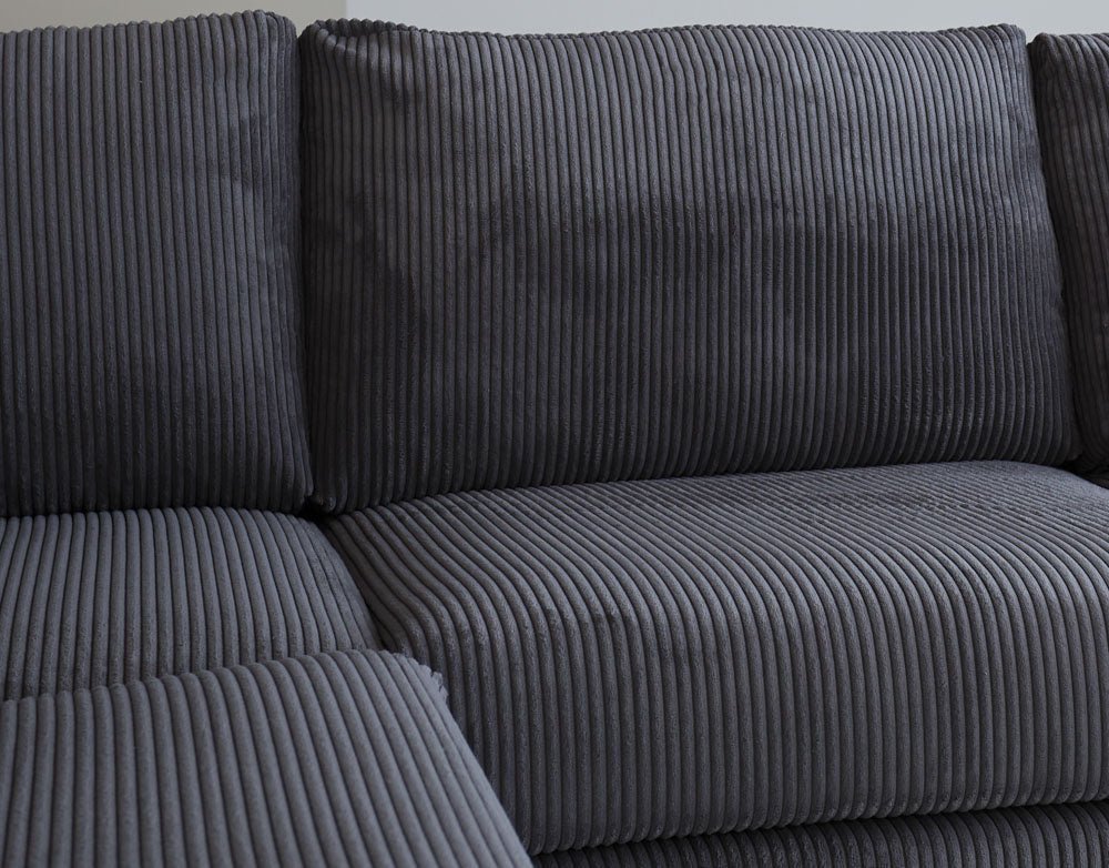 Das moderne Ecksofa Gabi ist aus Cordstoff gefertigt und hat Metallfüße. Dieses strapazierfähige Ecksofa bietet dank der breiten und weichen Kissen einen komfortablen Sitz. Komfortabel entspannen nach einem langen Arbeitstag? Wählen Sie das Ecksofa Gabi!