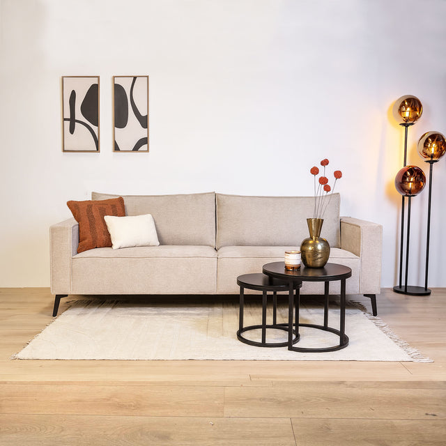 Der 3-Sitzer Yara ist mit einem weichen und langlebigen Chenille-Stoff in Anthrazit bezogen. Chenille ist bekannt für das komfortable und luxuriöse Gefühl, vor allem aber für die Langlebigkeit. Der Stoff verleiht dem Sofa eine reiche, weiche Textur und ein leicht glänzendes Finish, das Ihrem Interieur einen Hauch von Luxus verleiht.
