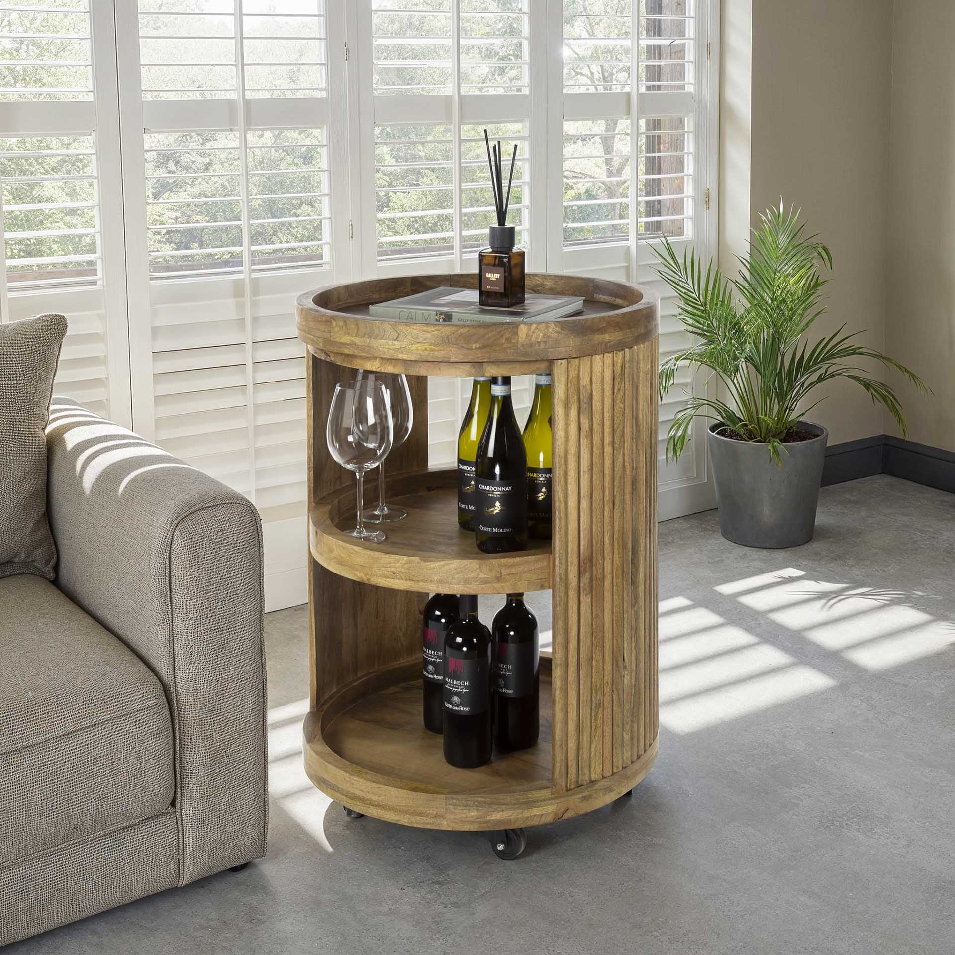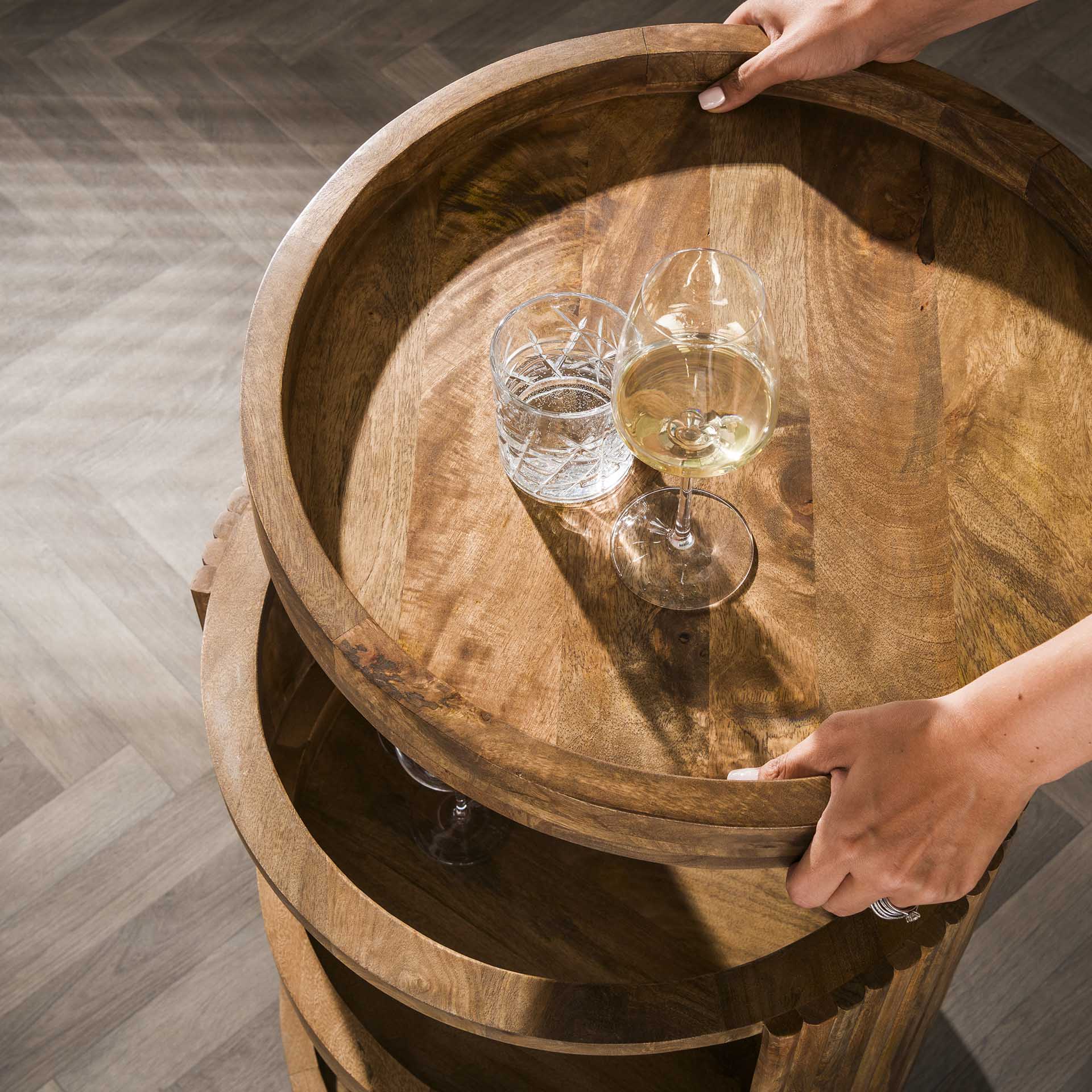 Bartrolley Mangoholz Sandfarbe auf Rädern