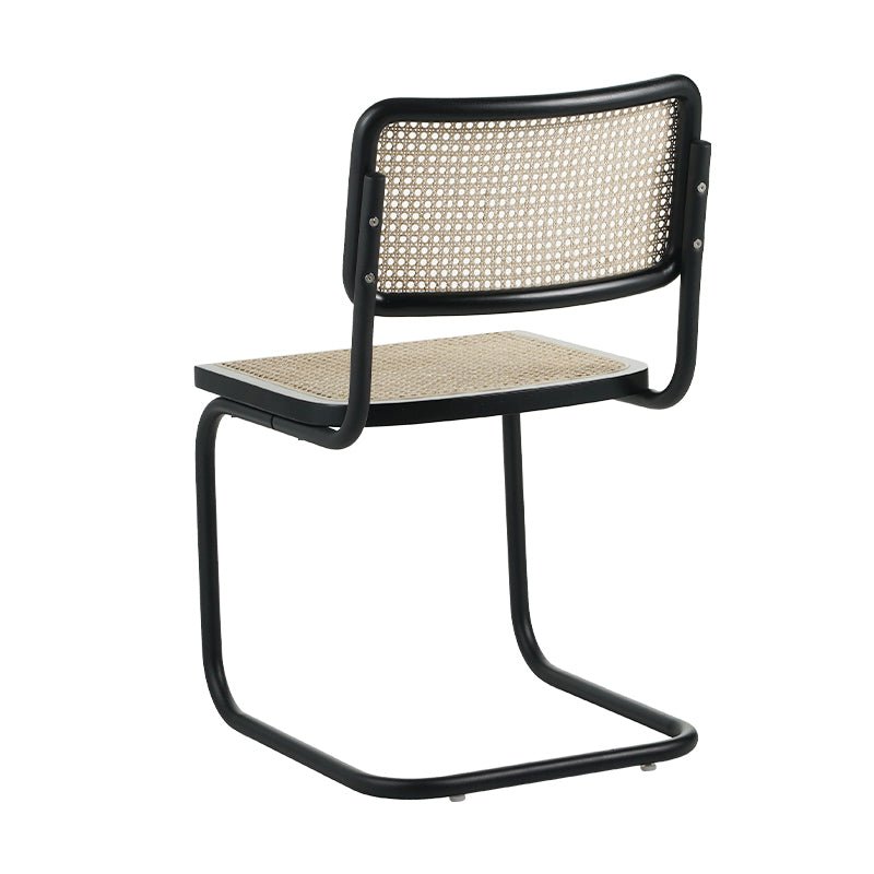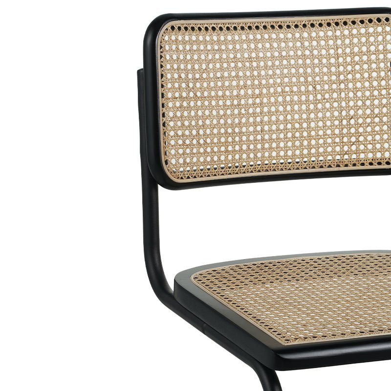 Buisframe eetkamerstoel Vester zwart metaal met bamboe webbing - Zonder Armleuningen