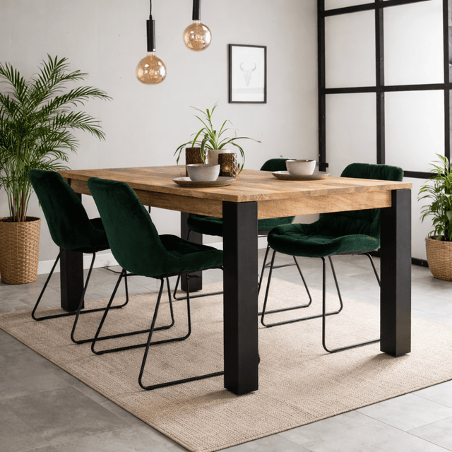 Der Esstisch Kansas ist ein Esstisch aus massivem Mangoholz mit schwarz pulverbeschichteten Stahlbeinen. Die Kombination aus der verdickten Holzplatte und dem robusten Gestell verleiht dem Tisch ein industrielles Aussehen, aber die neutralen Farben sorgen dafür, dass dieser Tisch in einem ländlichen, Vintage- oder modernen Interieur sicherlich nicht fehl am Platz ist! Der Kansas ist ein wunderschöner Esstisch mit robustem Charakter, erhältlich in mehreren Größen! Aufgrund der Tischhöhe empfehlen wir , Esszimmerstühle ohne Armlehnen in der Nähe dieses Tisches zu platzieren.