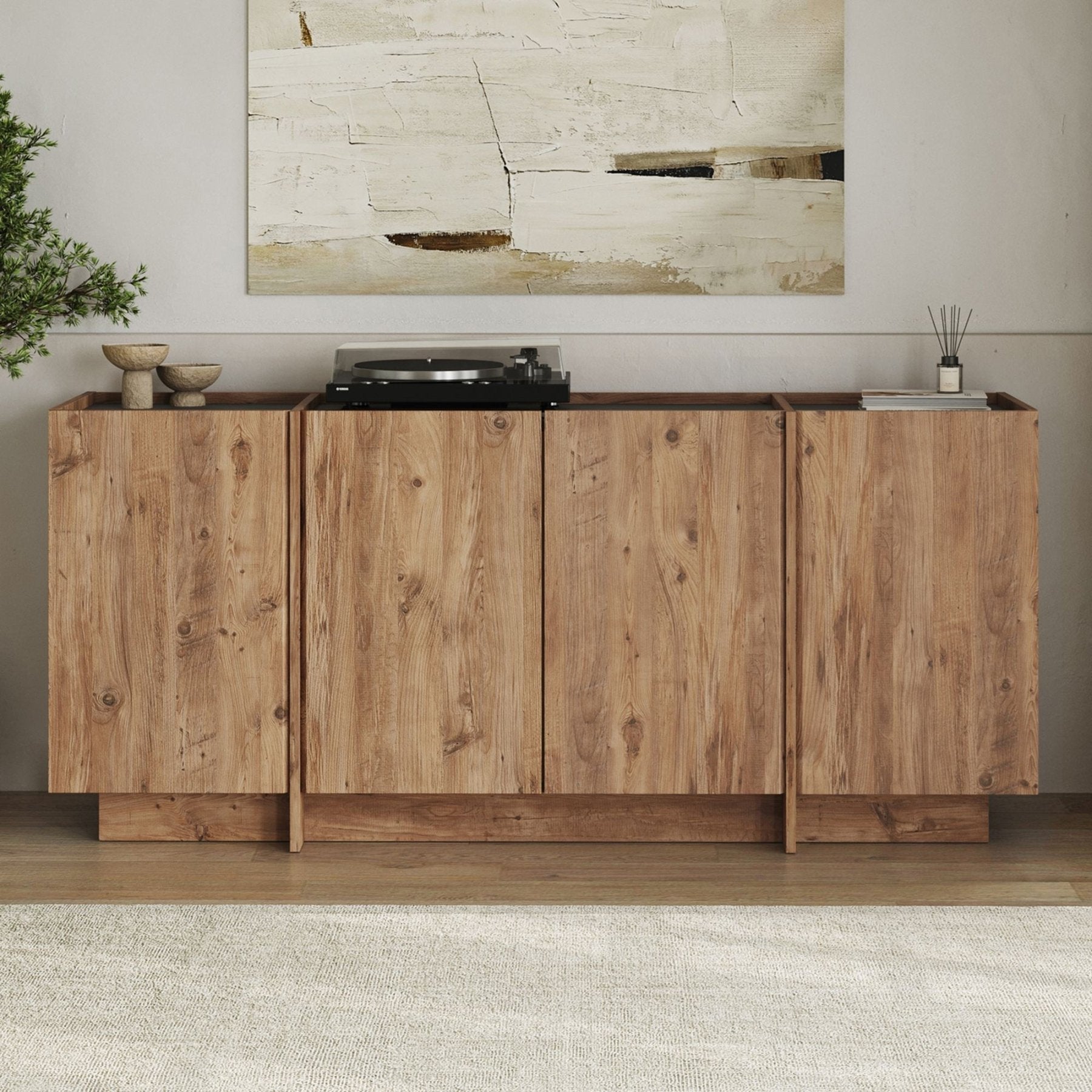 Verleihen Sie Ihrem Interieur ein warmes, modernes Upgrade mit dem Sideboard Lowen. Dieses stilvolle Möbelstück kombiniert eine raffinierte Eichen-Optik mit einem klaren, minimalistischen Design. Dank der ruhigen Ausstrahlung und den natürlichen Texturen passt Lowen perfekt in ein skandinavisches, Japandi- oder modernes Interieur.