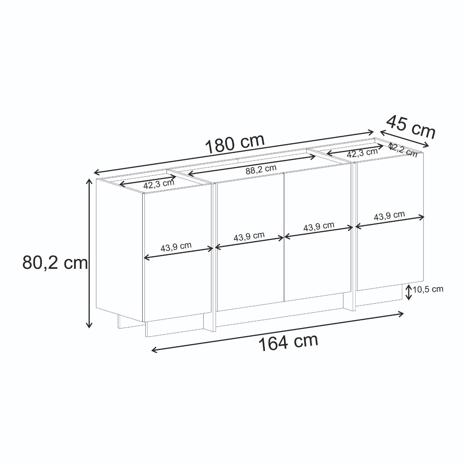 Das Sideboard Lowen ist nicht nur ein Blickfang, sondern auch eine praktische Aufbewahrungslösung für jeden Raum. Mit einer Breite von 180 cm bietet das Möbelstück reichlich Platz für Ihr Geschirr, Bücher oder andere persönliche Gegenstände. Das grifflose Design und die klaren Linien sorgen dafür, dass das Sideboard nahtlos mit Ihrer Wand verschmilzt. Die Oberseite eignet sich hervorragend für Dekoration, wie etwa einen schönen Plattenspieler, Wandkunst oder eine organisch geformte Vase.