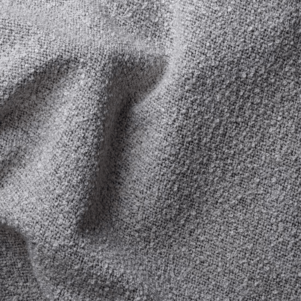 Der verwendete Bouclé-Stoff hat nicht weniger als 100.000 Martindale; das heißt 100.000 Sitzstunden (nachhaltig). Dieser Stoff fühlt sich durch seine grobe, aber verspielte Struktur robust und gleichzeitig weich an.