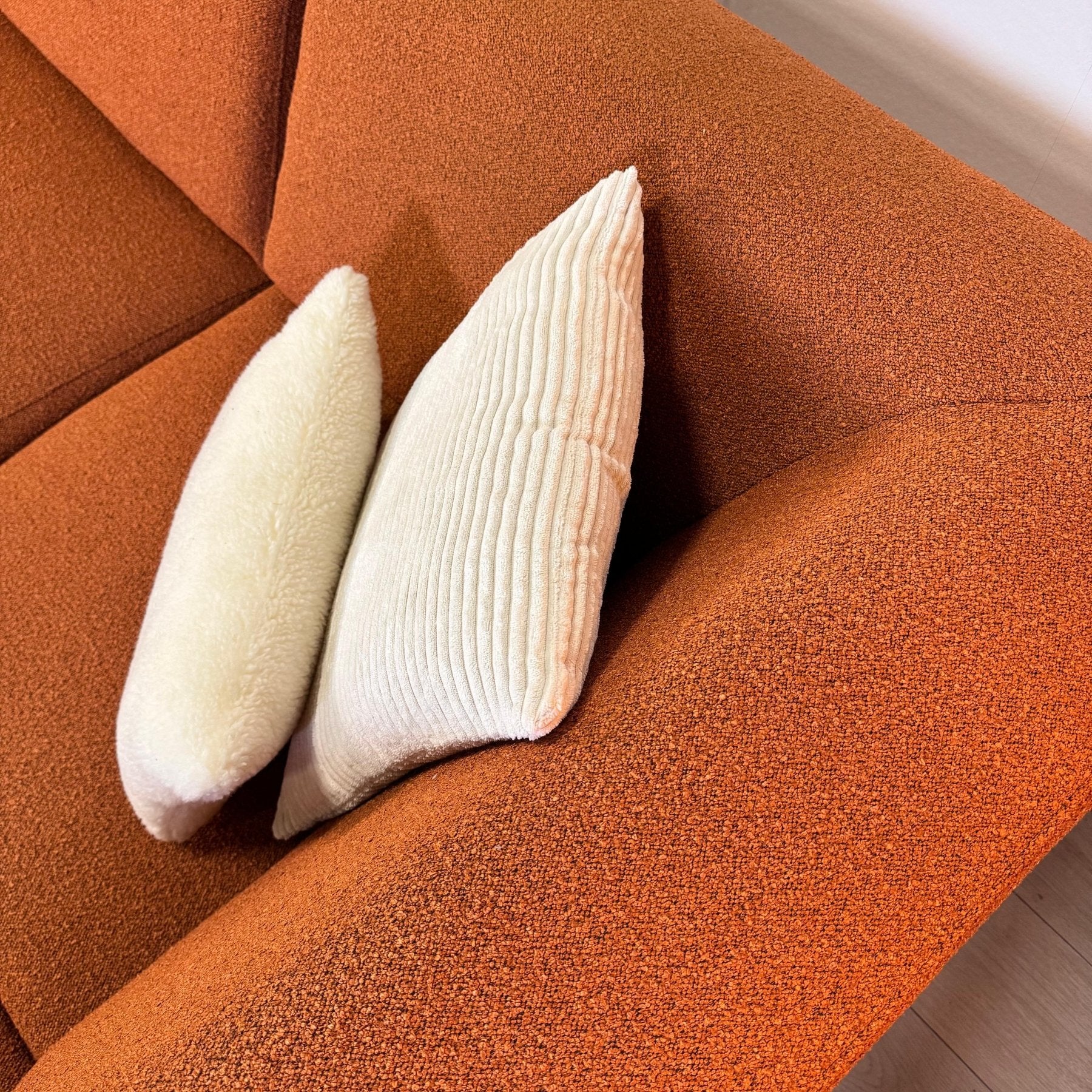 Bouclé, ein langlebiger und luxuriöser Stoff mit weicher Textur und Schlingen, verleiht Möbeln Komfort und Stil und sorgt so für einen warmen und schicken Look in jedem Interieur.
