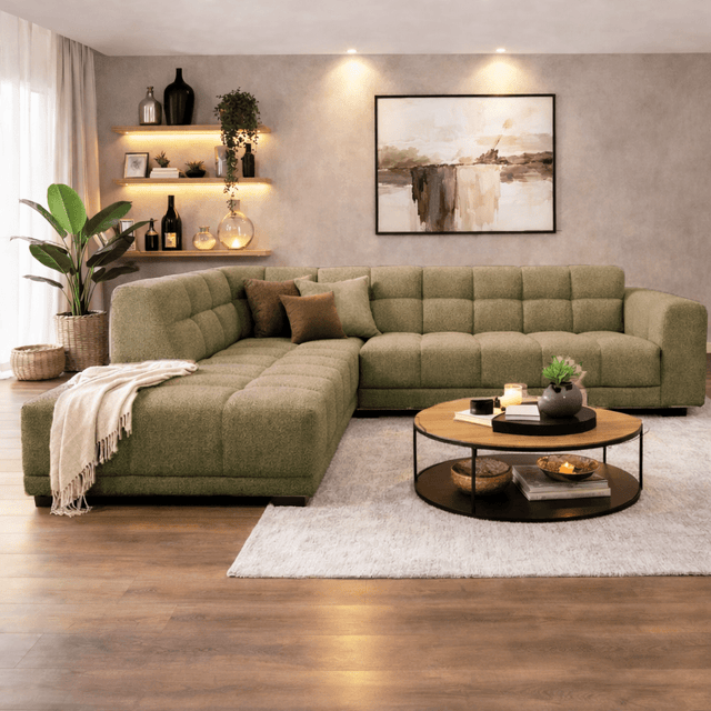 Das Ecksofa Nova in Bouclé ist die perfekte Kombination aus Komfort, Stil und Ruhe. Mit seinen weichen, vollen Formen und der modernen Blocksteppung ist Nova ein echter Blickfang in jedem Wohnzimmer. Der warme Bouclé-Stoff verleiht dem Sofa eine luxuriöse Ausstrahlung und eine wunderbar weiche Haptik. Der Stoff hat eine Martindale-Zahl von 50.000 und ist für Haushalte mit Haustieren geeignet.