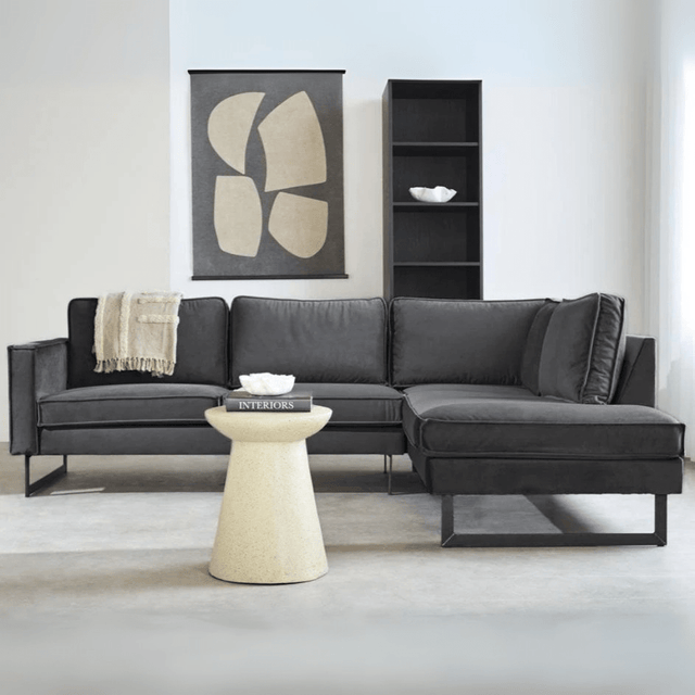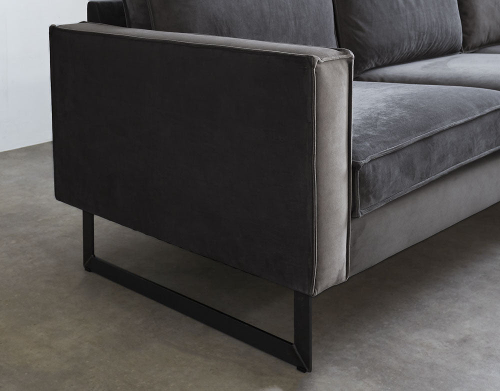 Das Ecksofa Quinn ist eine wertvolle Bereicherung für jedes Interieur. Es ist äußerst bequem, stilvoll und wirkt durch die Kombination aus schwarzen Metallbeinen und mattem Samt besonders industriell. Samtsofas lassen sich hervorragend mit verschiedenen Materialien und Einrichtungsstilen kombinieren und sorgen zudem für eine warme Atmosphäre. Das Ecksofa Quinn verfügt über breite Sitzflächen, auf denen mehrere Personen problemlos Platz finden.