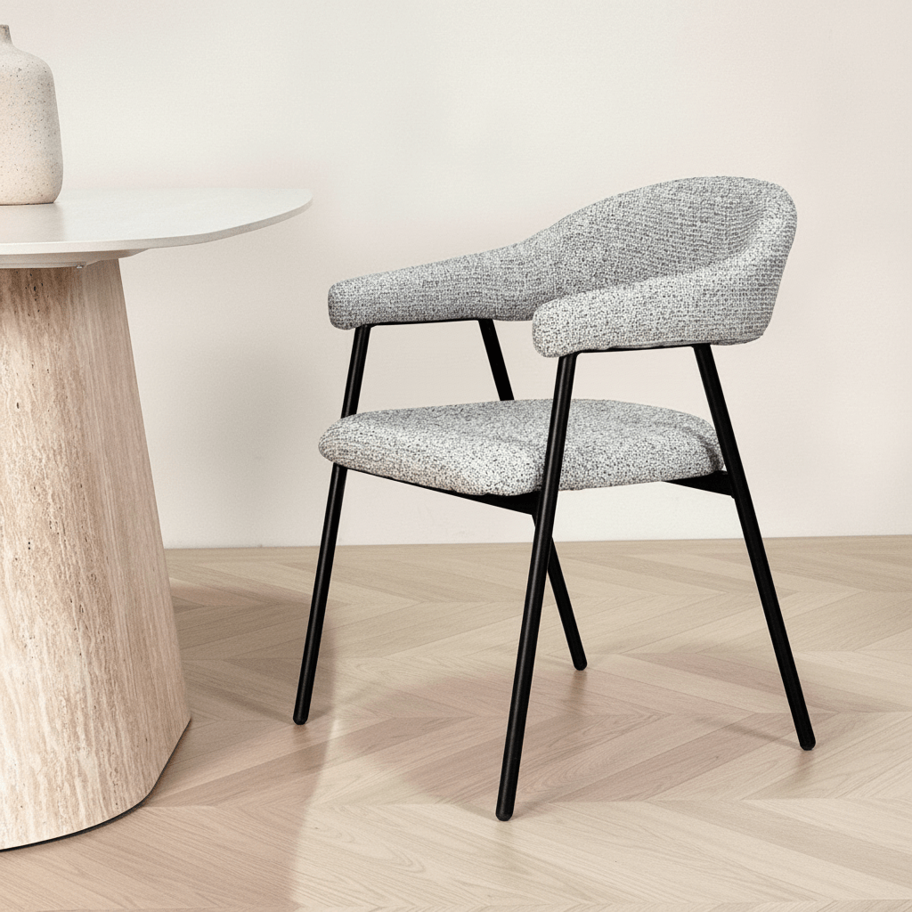 Entdecken Sie die perfekte Kombination aus Komfort, stilvoller Einfachheit, die mit einem hochwertigen Bouclé-Bezug versehen ist. Hergestellt für den täglichen Gebrauch sowie für besondere Abendessen, verleiht Lisa jedem Raum sofort Eleganz und vor allem Wärme.