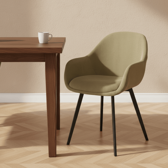 Moderne Esszimmerstuhl Remy aus Rippstoff Grün - Mit Armlehnen