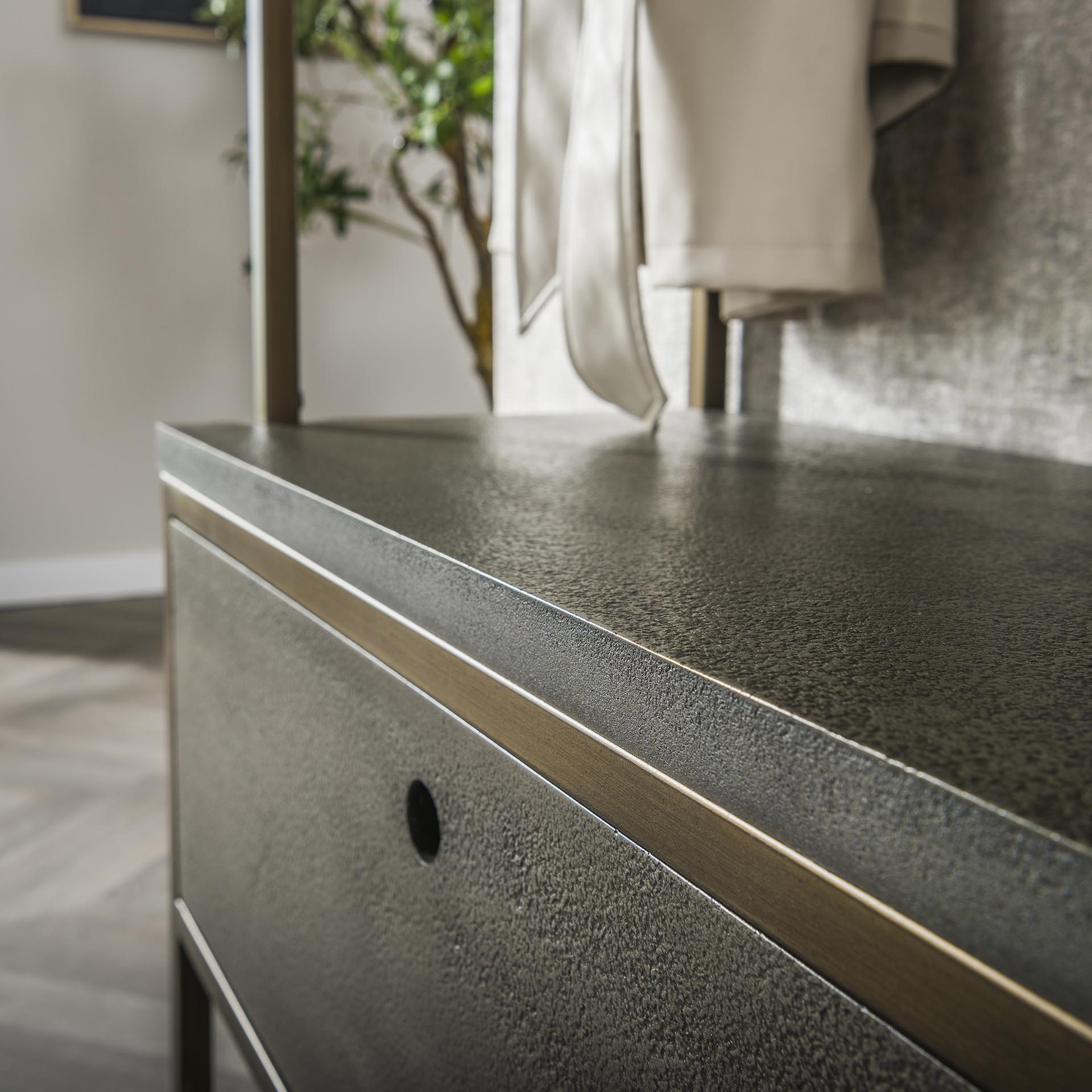 Lernen Sie die Garderobenmöbel von Ferre kennen, die perfekte Lösung für einen aufgeräumten und stilvollen Flur! Dieses Möbelstück ist mit einem wunderschönen handwerklichen Finish versehen, das über eine einzigartige 3D-Struktur verfügt, die jedem Raum sofort ein luxuriöses Aussehen verleiht.