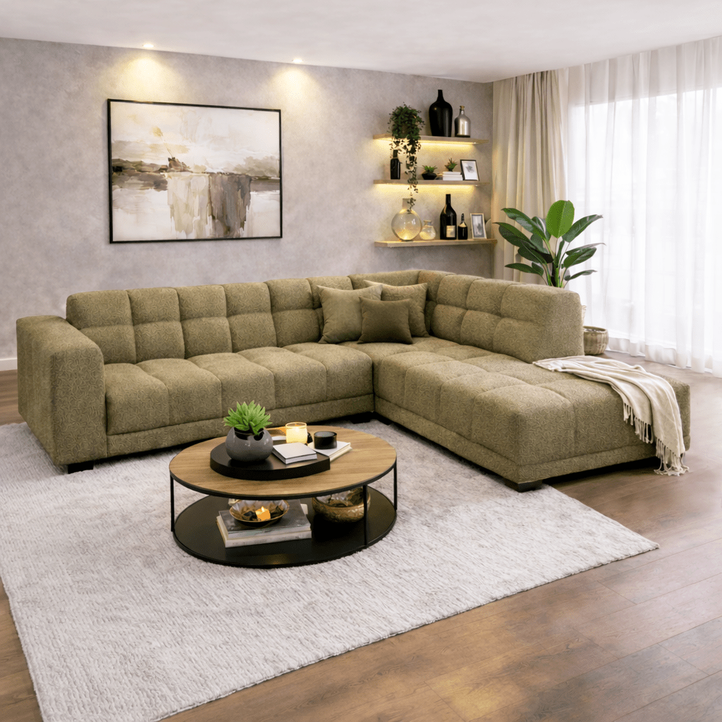 Nova is uitgevoerd met een royale lounge aan de rechterzijde, waardoor je alle ruimte hebt om te ontspannen na een lange dag. Dankzij de brede zitting en comfortabele rugkussens is deze bank ideaal voor lange avonden ontspannen, borrelen met vrienden of een weekend binge-watch sessie.