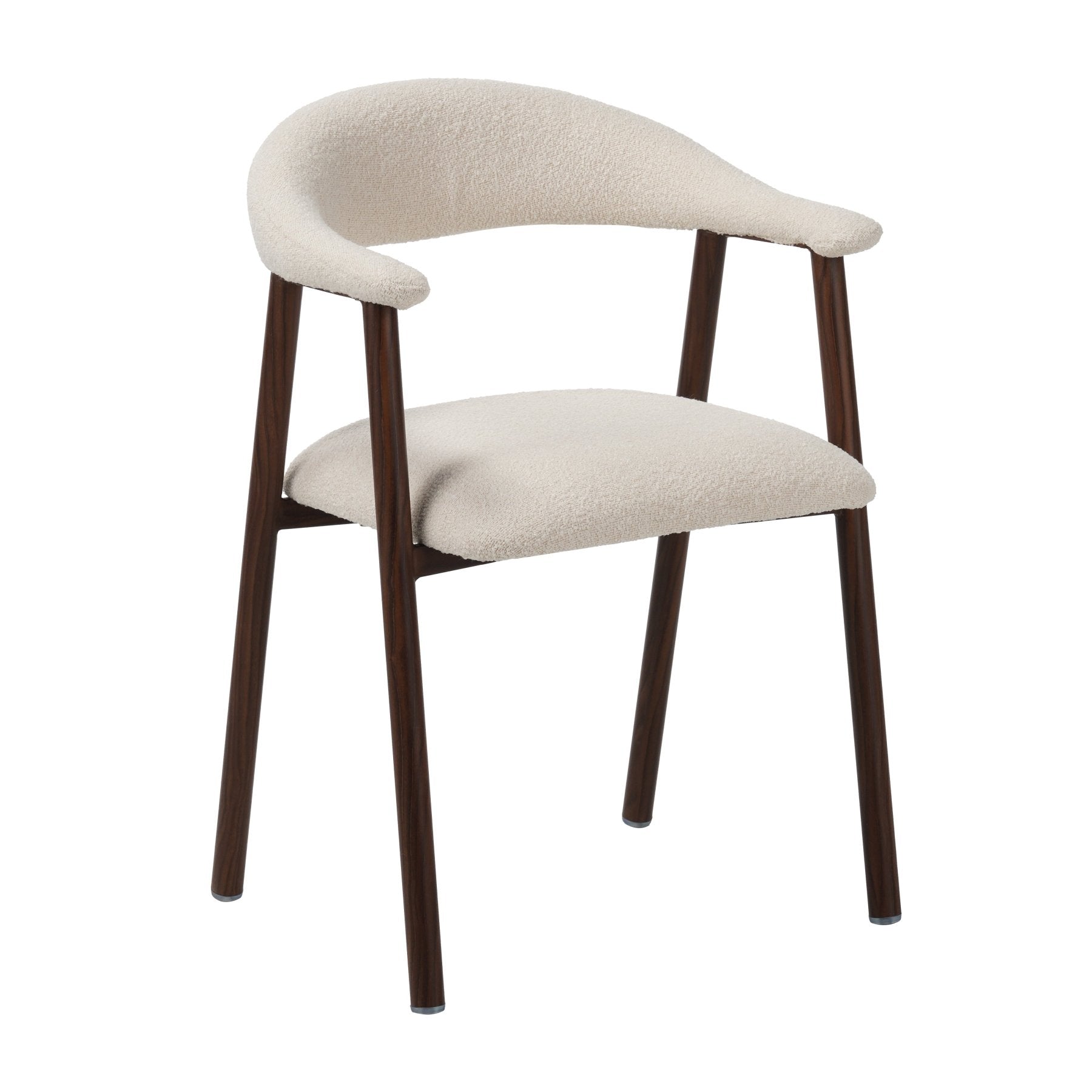 Japandi Esszimmerstuhl Ivory Bouclé Suki - Walnussrahmen - Mit Armlehne