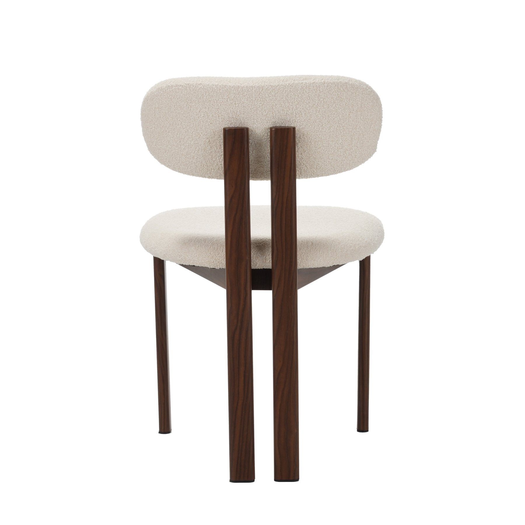 Japandi Esszimmerstuhl Miyo Bouclé Elfenbein - Walnusslook Rahmen