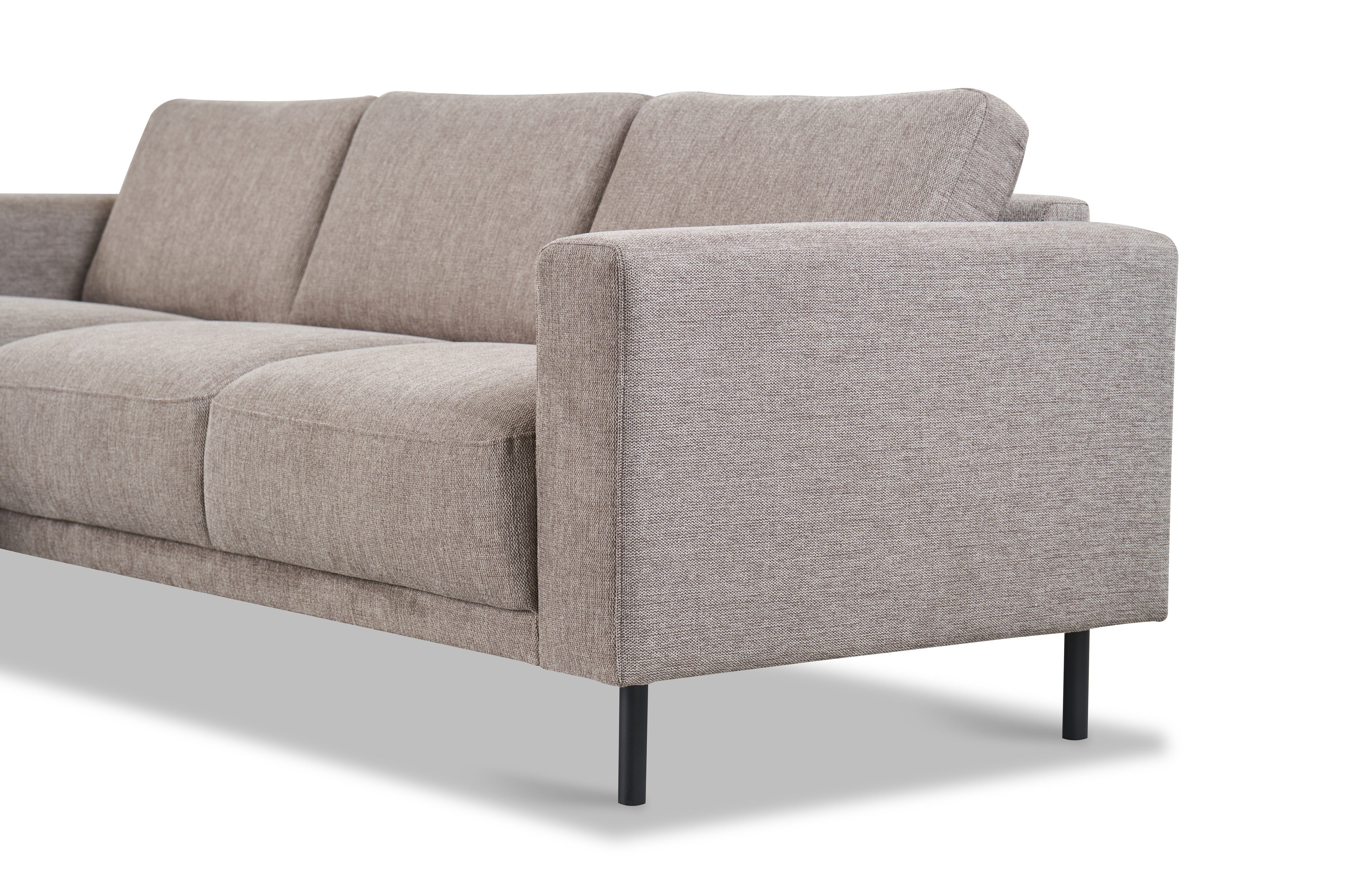 - Moderne afwerking: Slanke zwarte metalen poten (150 mm hoog) geven de bank een luchtige uitstraling en maken schoonmaken eenvoudig.