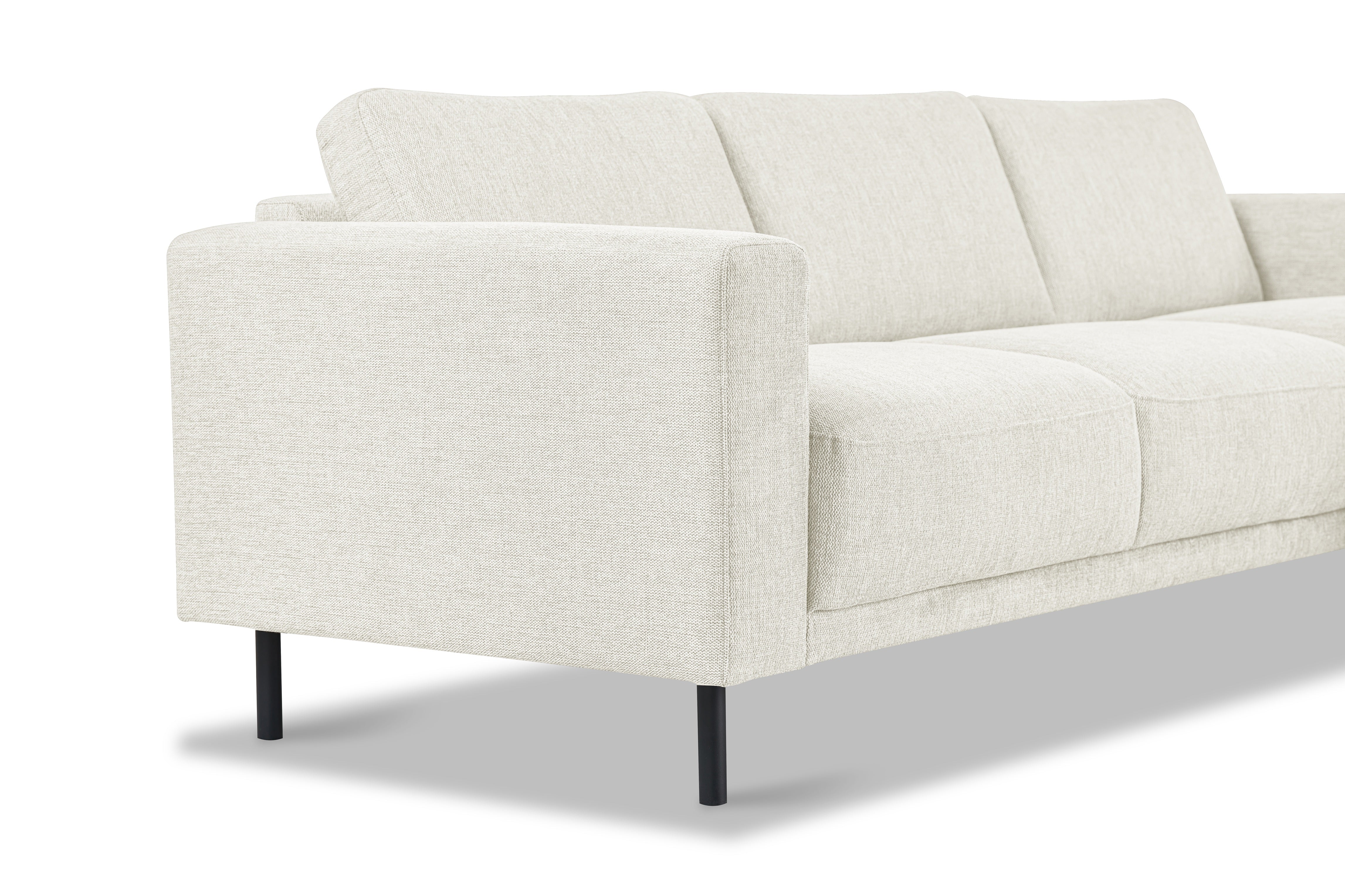 • Moderne afwerking: Slanke zwarte metalen poten (150 mm hoog) geven de bank een luchtige uitstraling en maken schoonmaken eenvoudig.