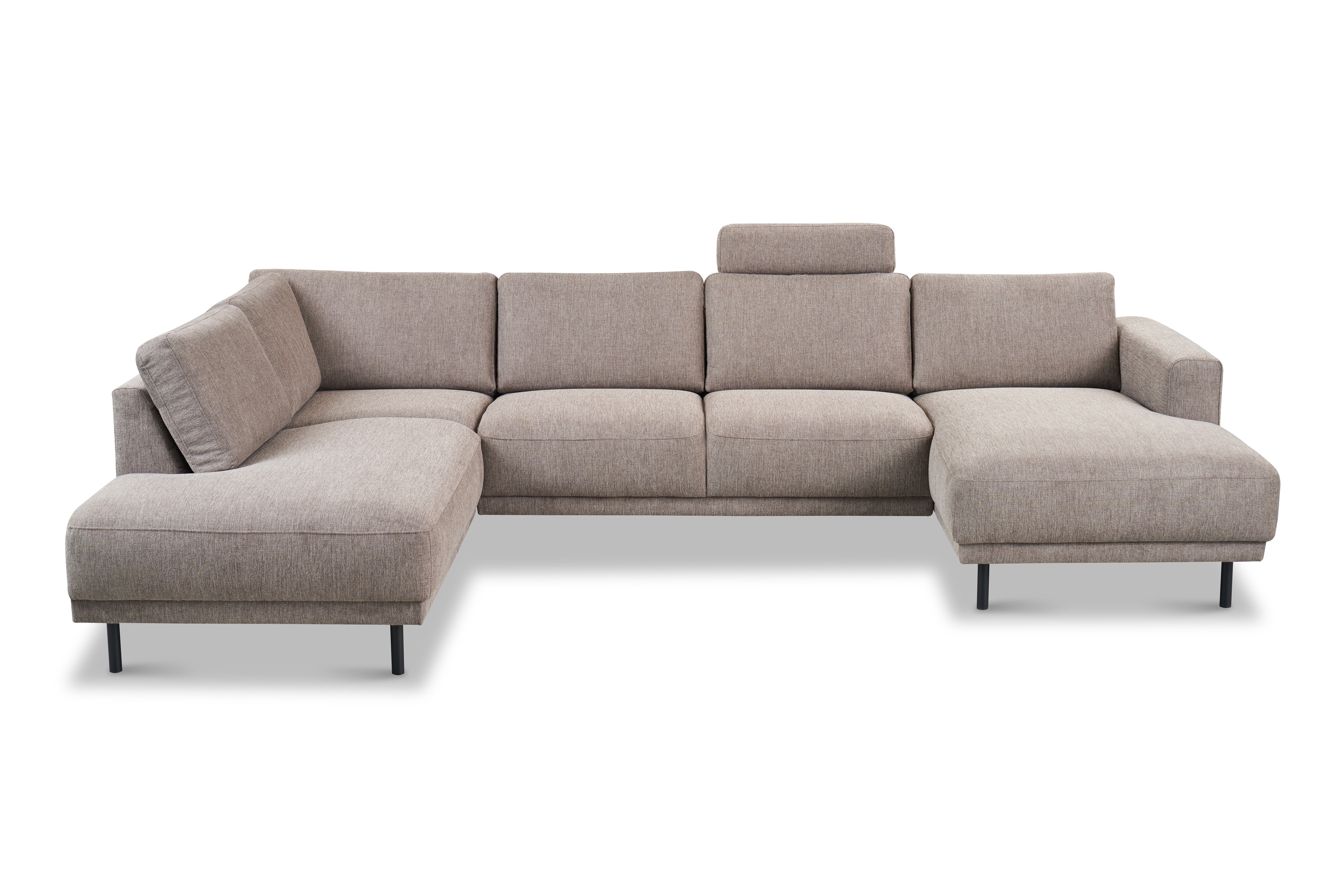 Moderne U-Bank Hoekbank Links Taupe Stof Aniko 310x197x78 cm