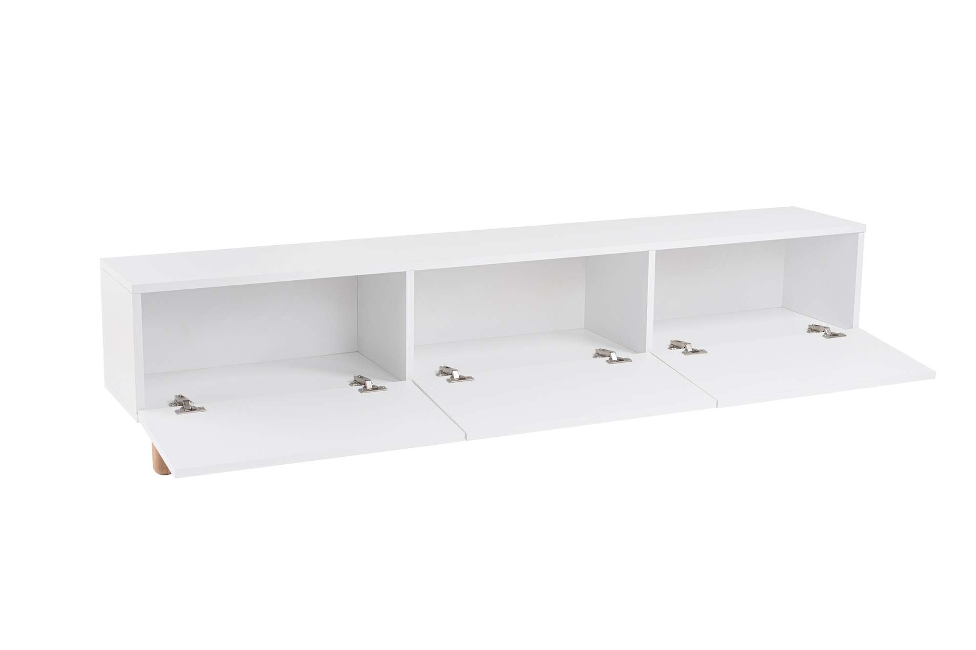 Modernes TV-Möbel Alvin Weiß mit Holzbeinen 180 cm Melamin