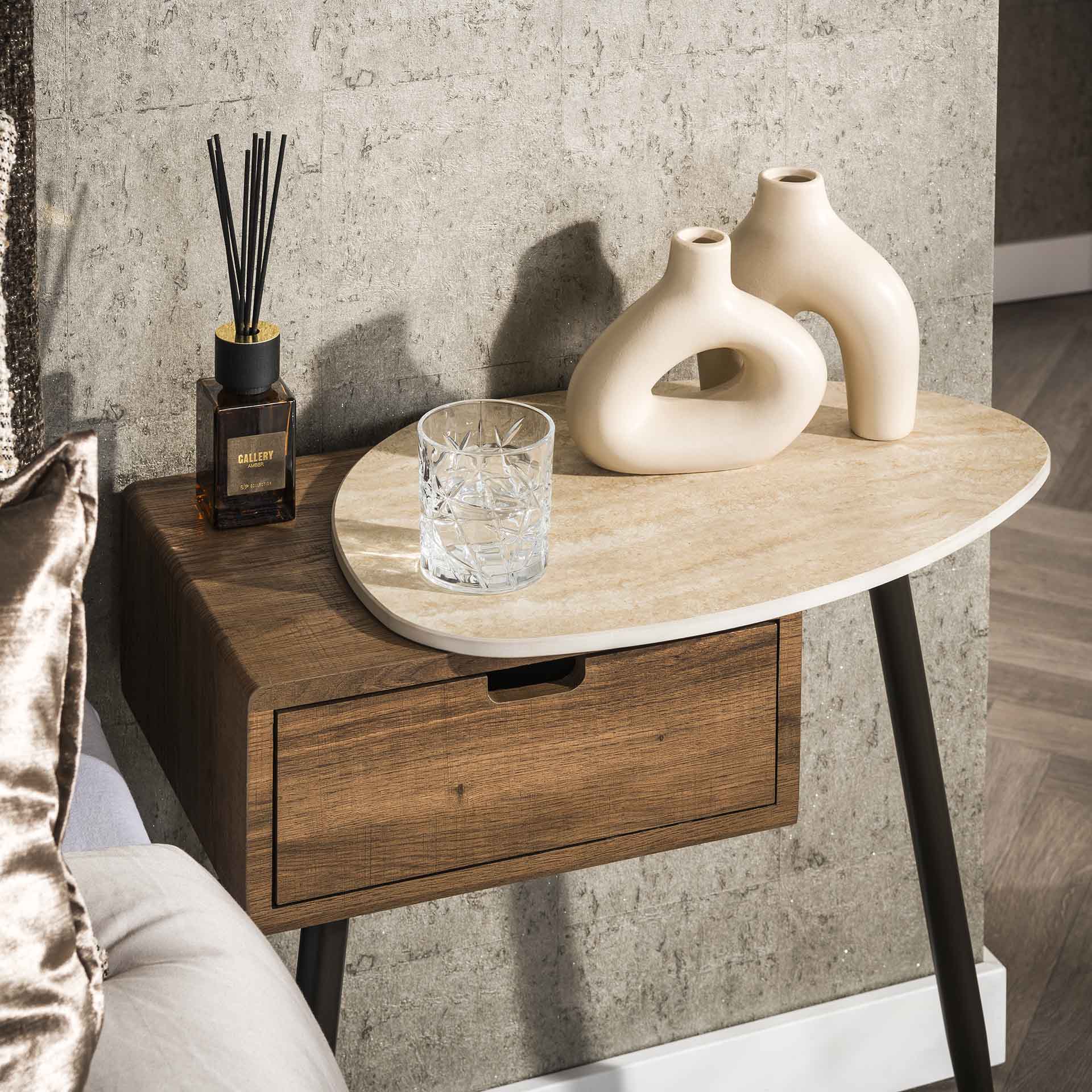 Funktionales Nachttisch mit Keramik Travertin