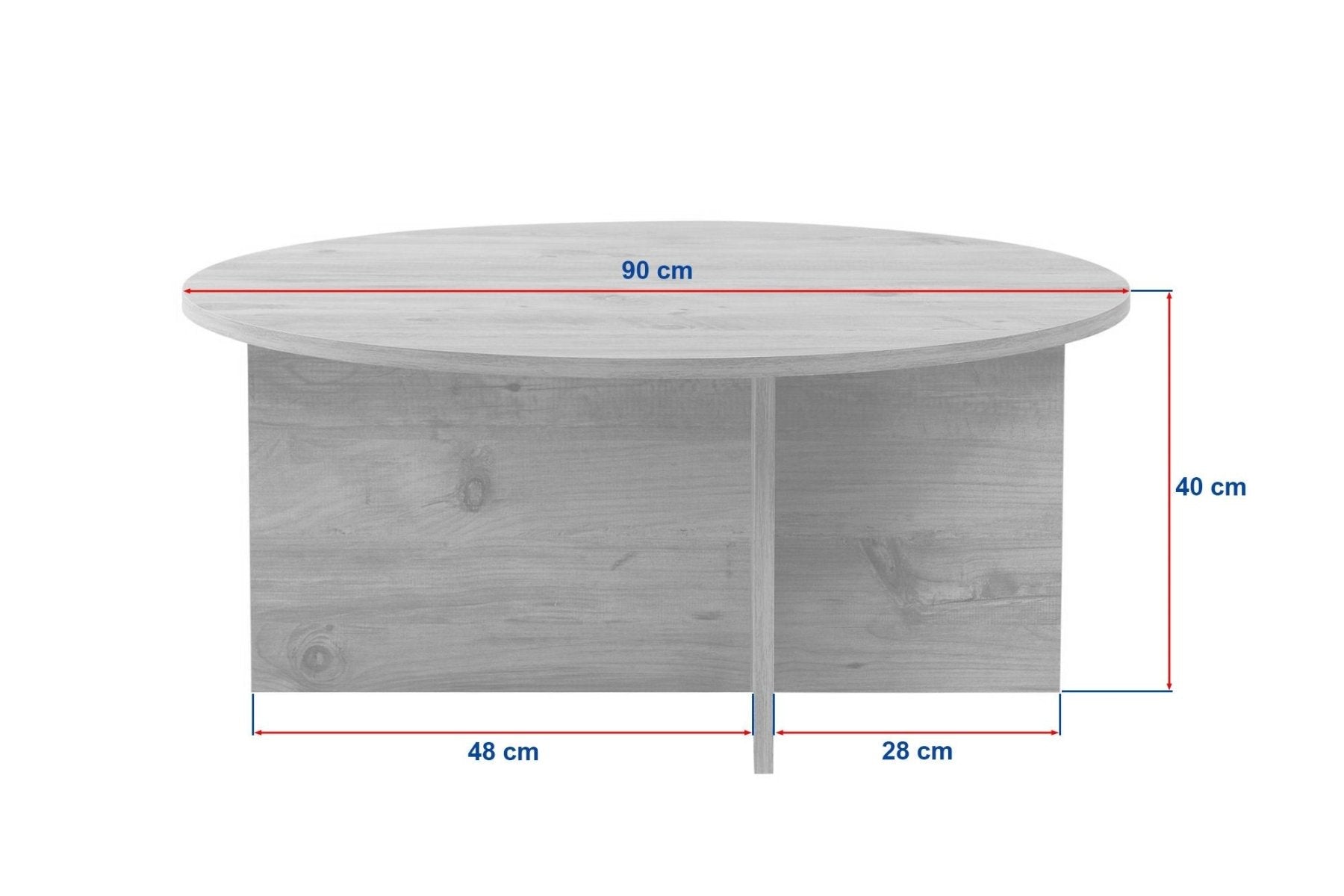 Beschreibung und Spezifikationen von Runde Couchtisch Dakota Eiche Melamin 90x90x40 cm