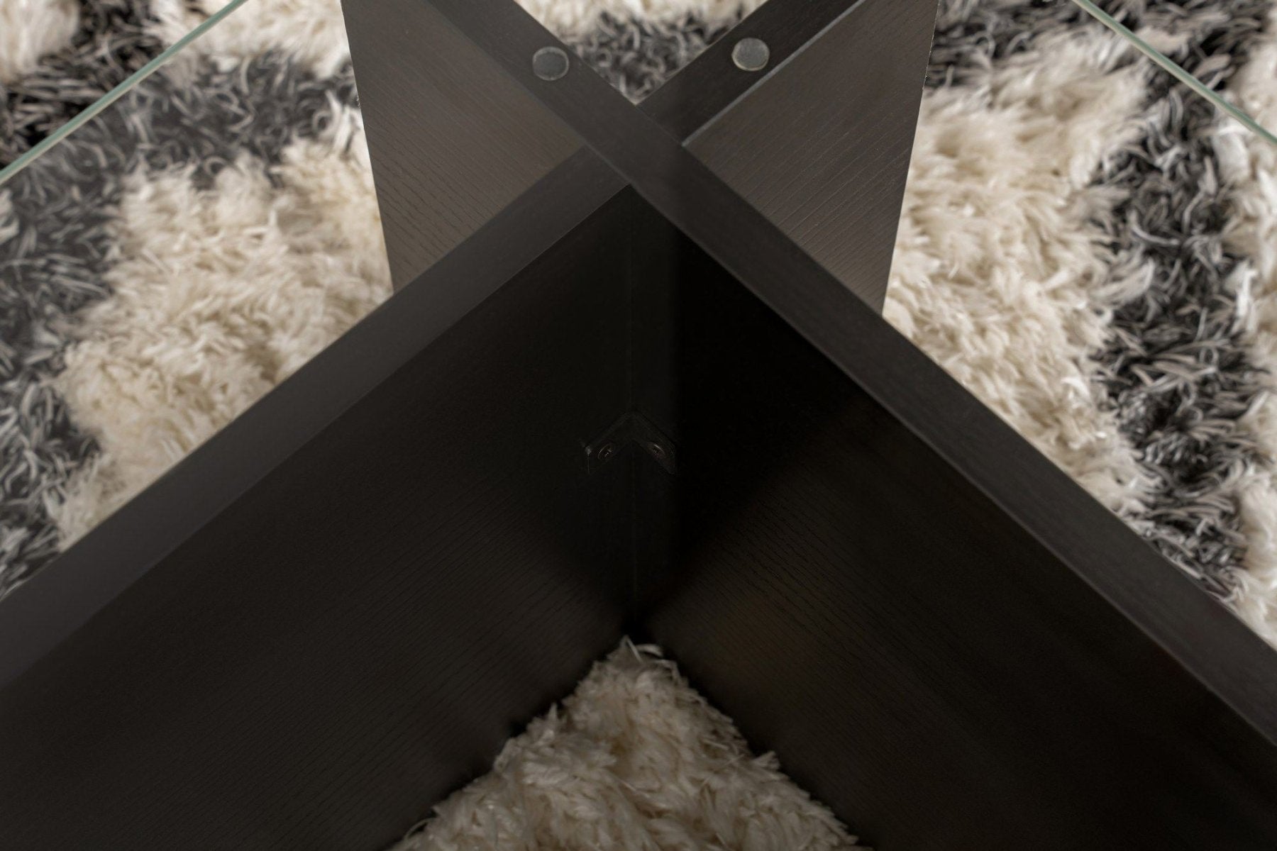 Beschreibung und Spezifikationen von Couchtisch Schwarz Holz Melamin Glas Opal 105x65x30 cm