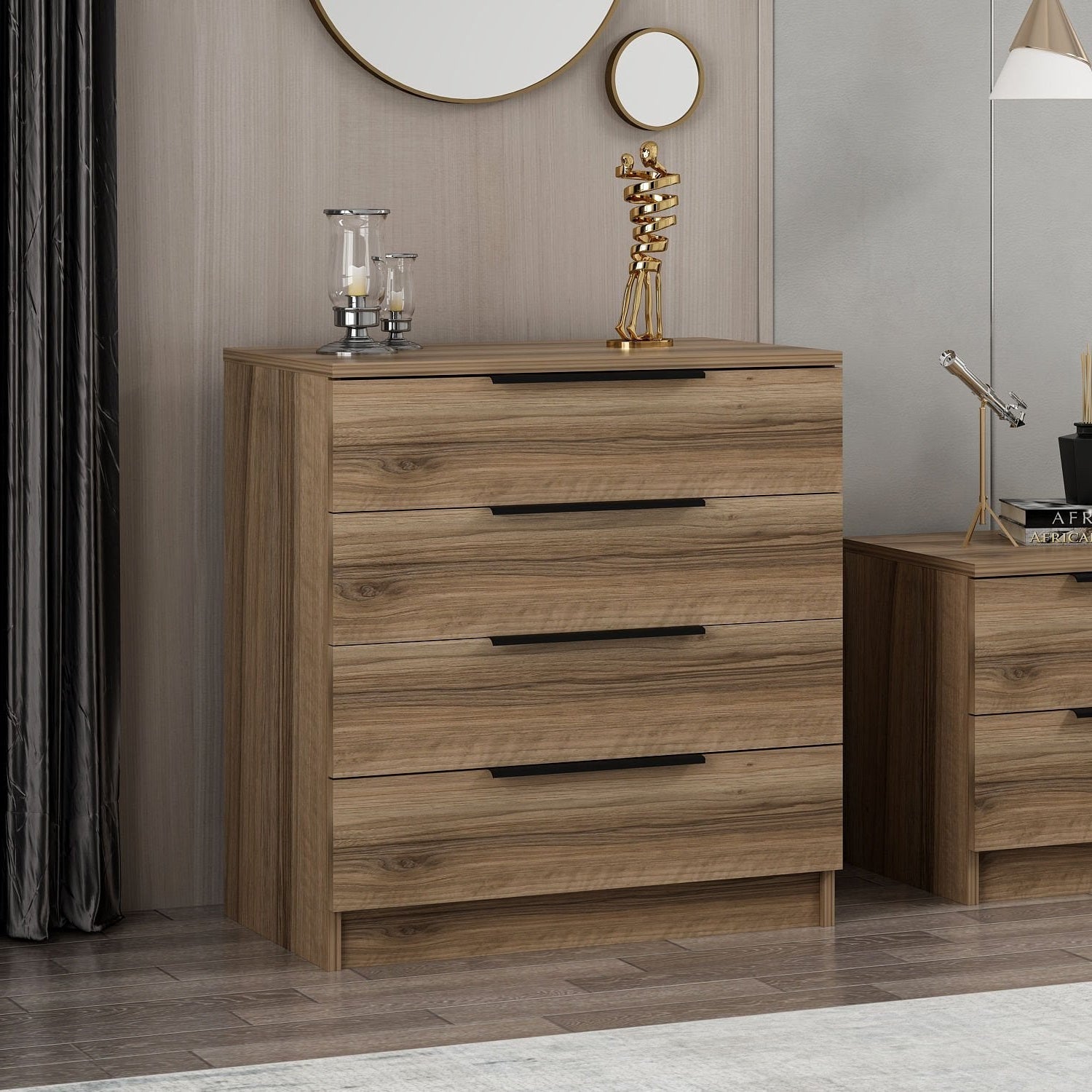 Die reichen und warmen Töne der Walnuss schaffen eine zeitlose und einladende Atmosphäre in deinem Schlafzimmer. Die Walnussfarbe der Kommode verleiht einen Hauch von Raffinesse und Luxus, wodurch dein Raum sofort in ein Heiligtum von Stil und Komfort verwandelt wird.
