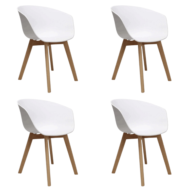 Skandinavischer Esszimmerstuhl Herning Weiß – Kunststoffschale – Buchenholzbeine
