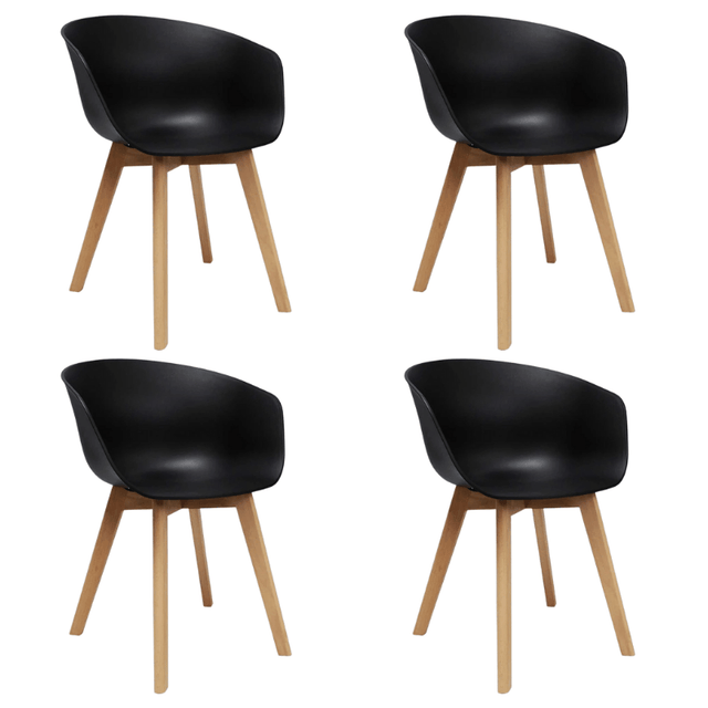 Skandinavischer Esszimmerstuhl Herning Schwarz – Kunststoffschale – Buchenholzbeine