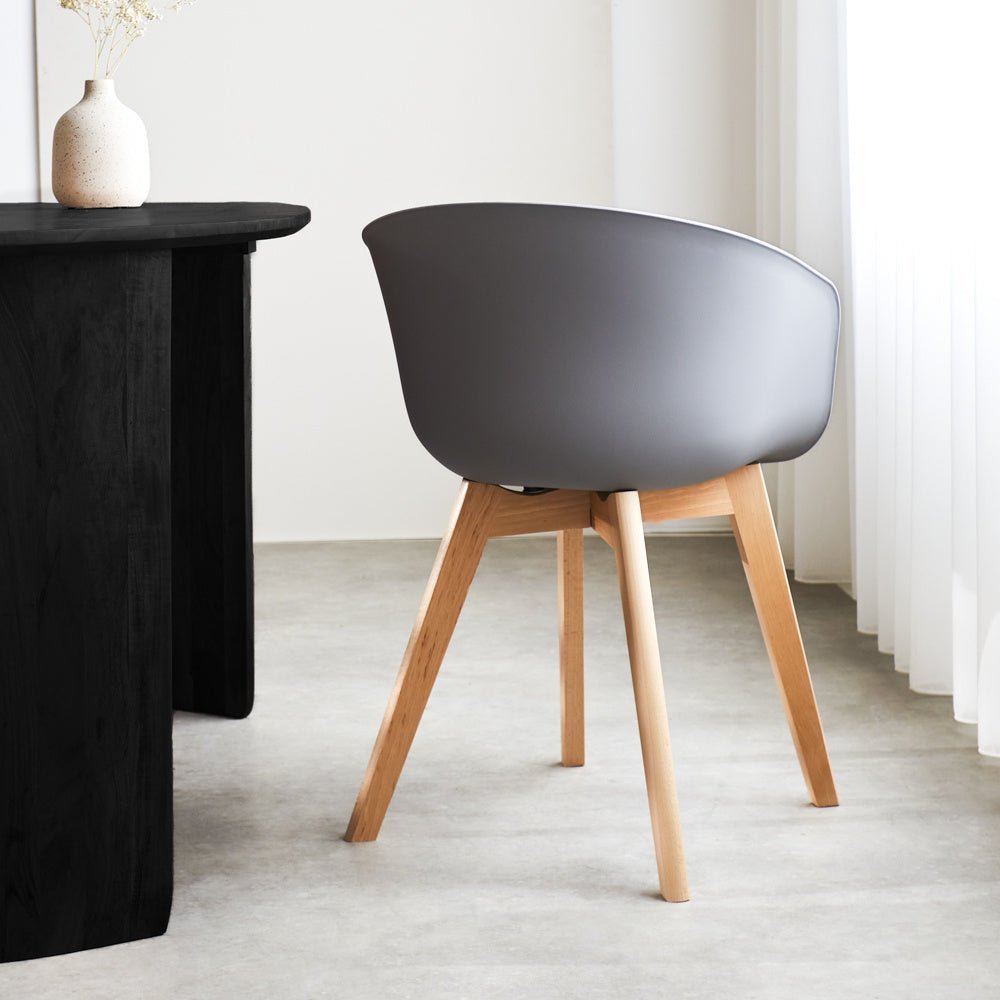 Skandinavischer Esszimmerstuhl Herning Grau – Kunststoffschale – Buchenholzbeine