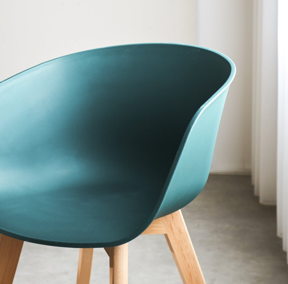 Skandinavischer Esszimmerstuhl Herning Grün – Kunststoffschale – Buchenholzbeine