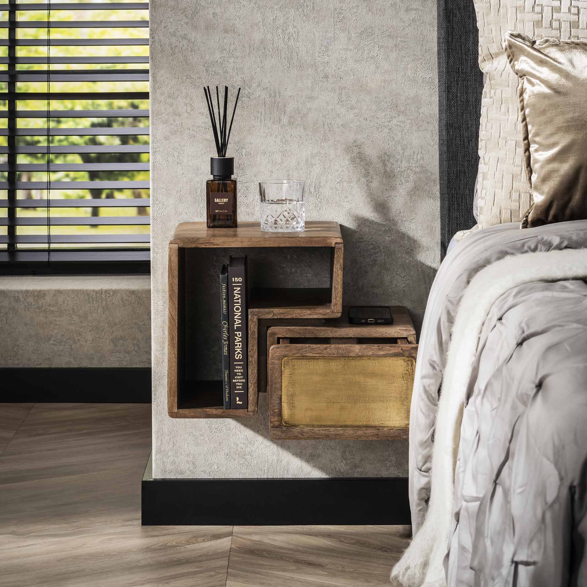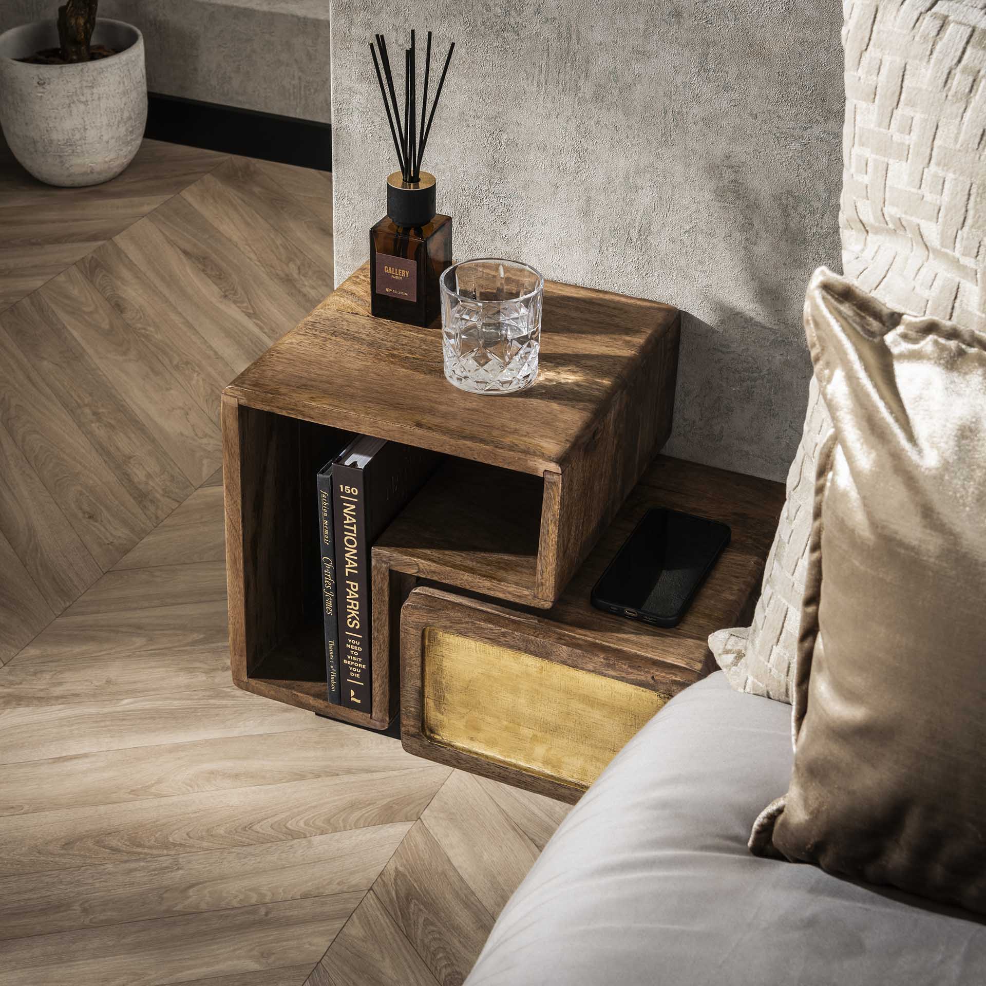 Das Solano-Set aus 2 Nachttischen ist eine praktische und stimmungsvolle Ergänzung für Ihr Schlafzimmerinterieur. Dank des langlebigen Mangoholz und des zeitlosen Designs bleiben diese Tische jahrelang eine stilvolle Wahl.