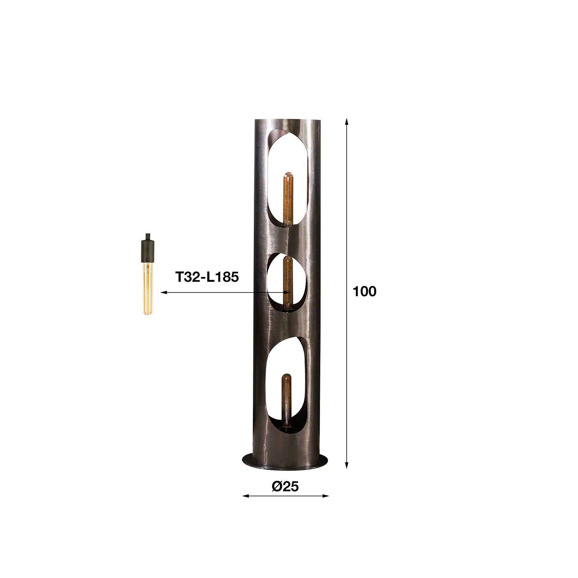 Mit einer Höhe von 111 cm und einem Durchmesser von 25 cm ist diese Stehleuchte kompakt genug, um in kleineren Räumen platziert zu werden, aber groß genug, um ein auffälliges Element zu sein. Der schlanke Sockel sorgt dafür, dass die Lampe stabil steht, ohne zu viel Fläche einzunehmen.