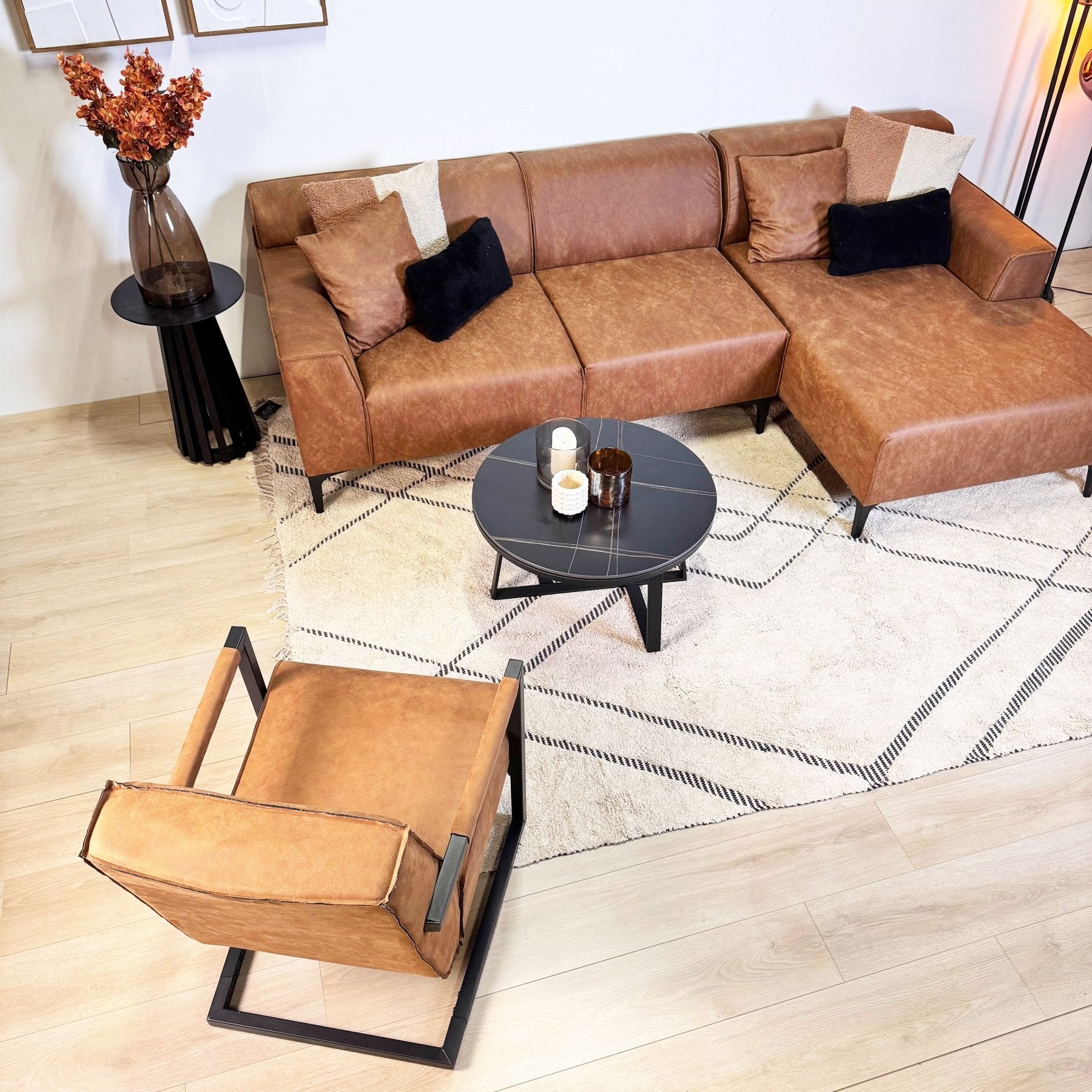 Die Kombination aus dem gebürsteten schwarz lackierten Metallrahmen und dem robusten Sitz aus recyceltem Leder mit offenen Kanten sorgt dafür, dass dieser Sessel dem industriellen Trend entspricht. Durch das transparente Pulverbeschichten des Rahmens sind die ursprünglichen Unebenheiten am Rahmen noch sichtbar. Ein auffälliges Detail ist die offene Kante, mit der dieses Modell abgeschlossen ist. Mit dem hervorragenden Sitzkomfort ist der Tiger eine große Bereicherung für dein Interieur!
