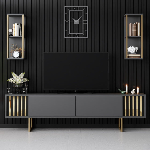 TV -Möbel Set Gold Line Anthrazite Schwarzes Melamin 180x48x30 cm